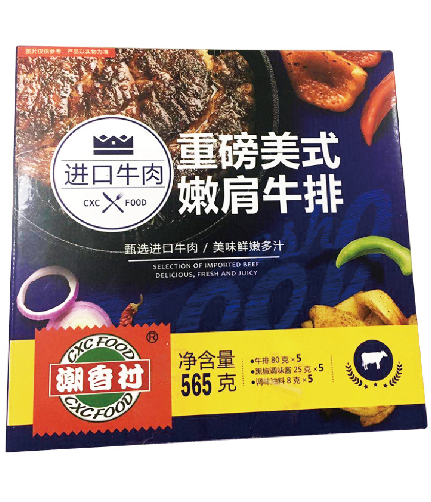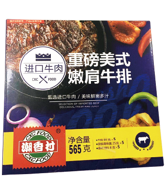 產(chǎn)品介紹:重磅美式嫩肩牛排——精選牛肩部,其肉質(zhì)細(xì)嫩,大理石雪花紋理自然密布,肥瘦相間,口感油潤爽滑。 工藝:腌制 規(guī)格(g):565g 包裝規(guī)格:5片/盒 箱規(guī):12盒/箱