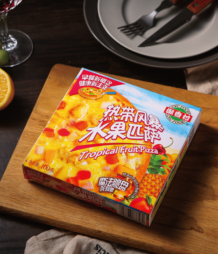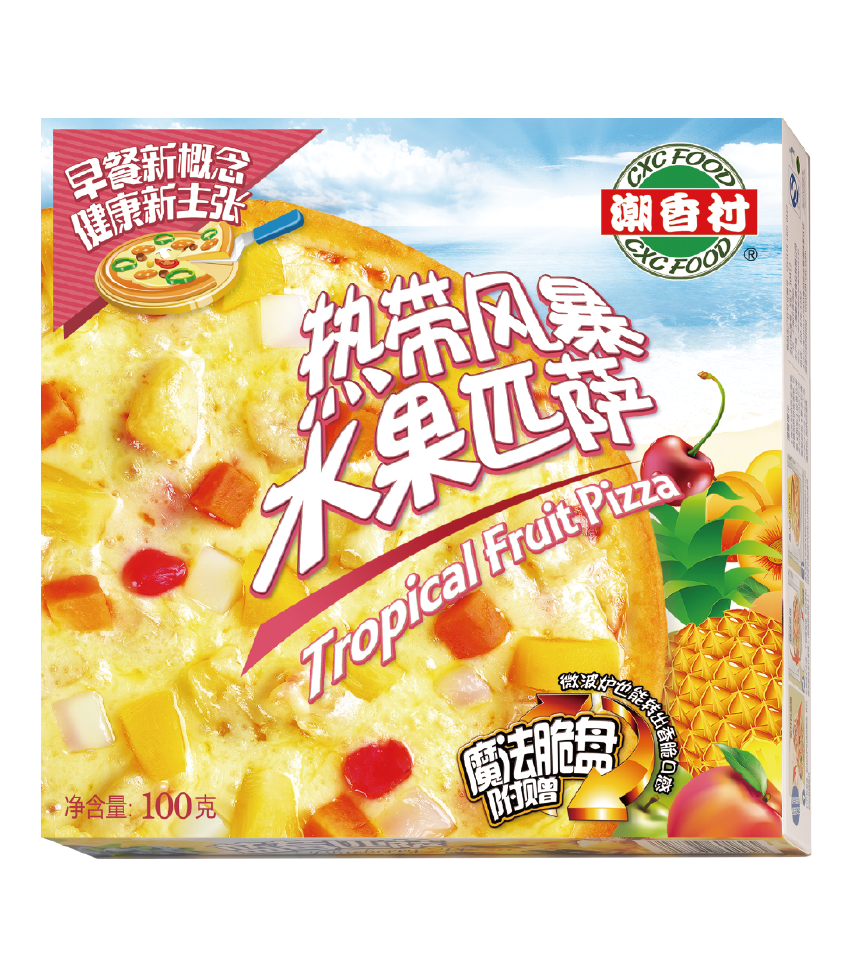 產(chǎn)品介紹:熱帶風暴水果匹薩——蜜桃、菠蘿、蒟蒻等等各種鮮脆多汁的水果,與番茄醬的酸甜、乳酪的濃郁交織在一起,交錯的甜味和豐富營養(yǎng)帶來幸福元氣的早餐新概念。 工藝:半制成品 規(guī)格(g):100g 包裝規(guī)格:1片/盒 箱規(guī):40盒/箱