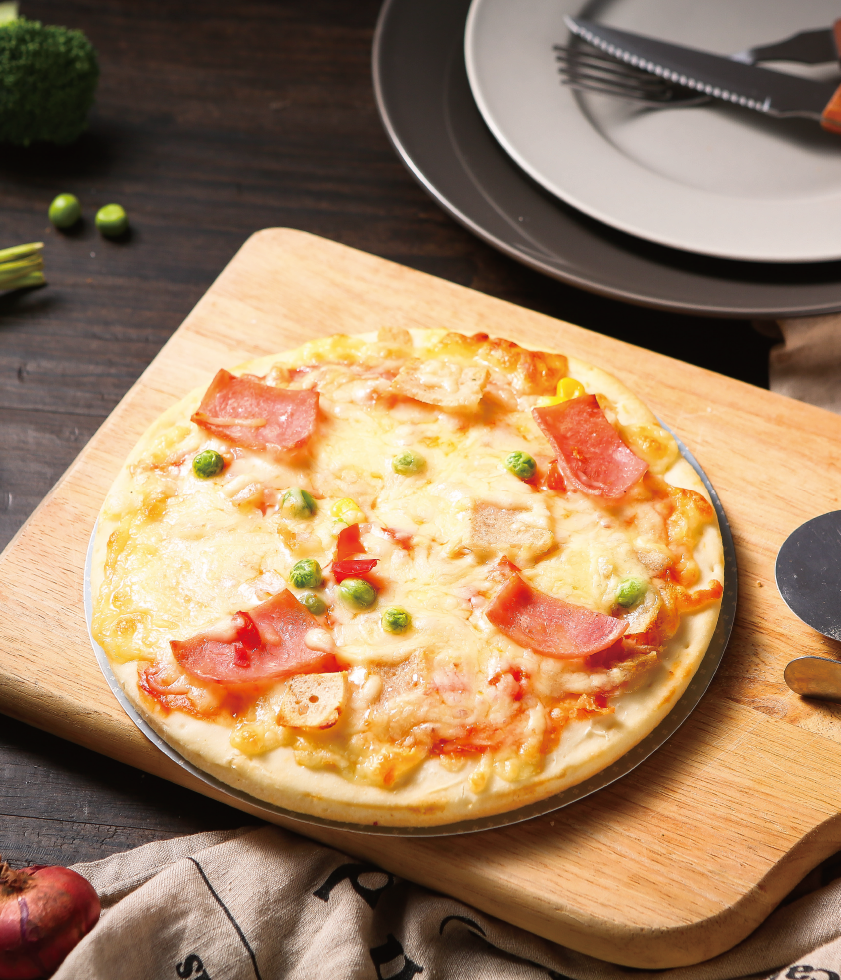產(chǎn)品介紹:肉香匹薩——肉食主義者的心頭好!火腿、午餐肉,搭配青豆、洋蔥、紅椒、玉米,佐以酸甜可口的番茄醬,和奶香濃郁的芝士,無肉不歡,十足享受 。 工藝:半制成品 規(guī)格(g):120g 包裝規(guī)格:1片/盒 箱規(guī):40盒/箱