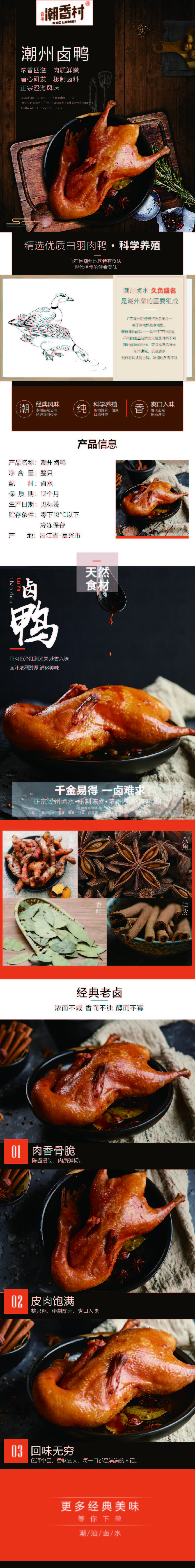 產(chǎn)品介紹:潮州鹵鴨——潮香村做的鹵鴨,只用新鮮鴨,拒絕冰凍鴨,自然散養(yǎng)的白羽肉鴨,皮薄肉瘦,光看著就覺得美味可口~配上絕不外傳的秘制鹵水配方,每一滴都是精華,鹵制以后,味道香醇撩人。 感受一只鴨的百般嫵媚。 工藝:陳鹵鹵制 規(guī)格(g):整只 包裝規(guī)格:1只/袋 箱規(guī):無