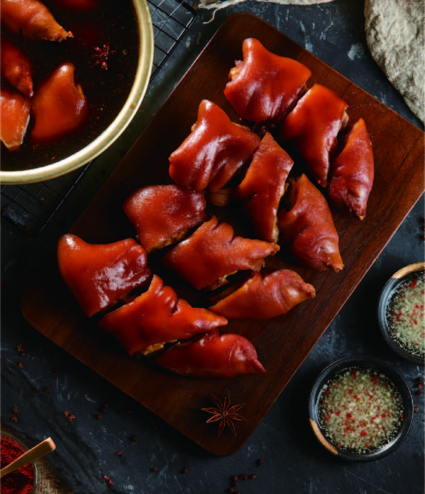產(chǎn)品介紹:潮州鹵水 隆江豬腳——韓愈的最愛!相傳,千年前的大文學家韓愈食過這款豬腳,對其彈嫩糯香、肥而不膩的口感贊不絕口,親自為它題名,為了與其他美食區(qū)分開,便以地名“隆江”為其命名--隆江豬腳。從此,隆江豬腳名揚四海,備受廣東人民歡迎,當?shù)亓鱾髦@樣一句話:“吃隆江豬腳要用鐵絲箍住舌頭,不然會把舌頭和豬腳一起吞下?!?/p>